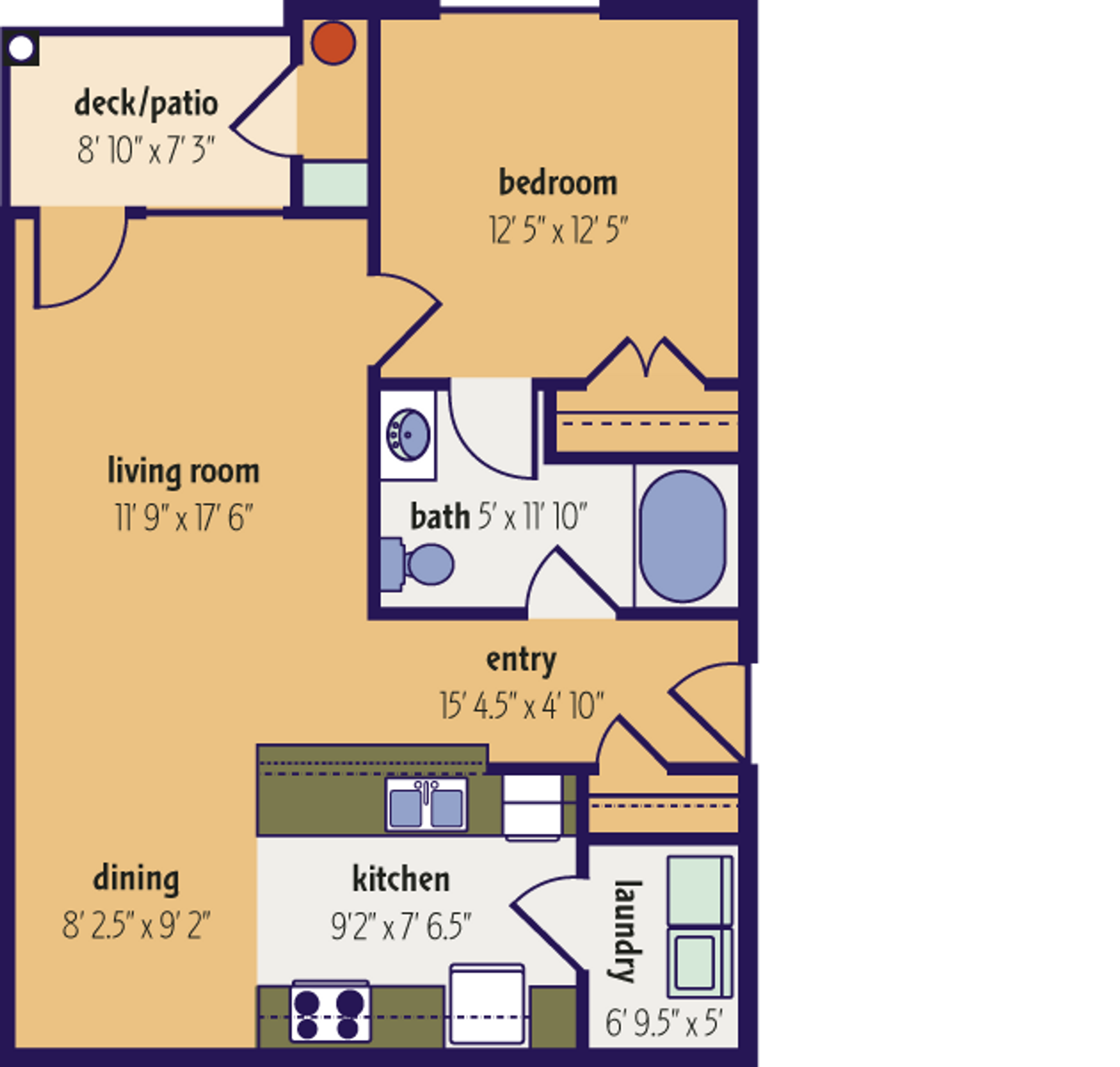 The Berkeley's 802 sqft. 1 bedroom and 1 bathroom apartment located on the 3rd floor features stainless steel appliances, granite countertops, an outdoor storage closet, spacious living space, and luxury finishes.