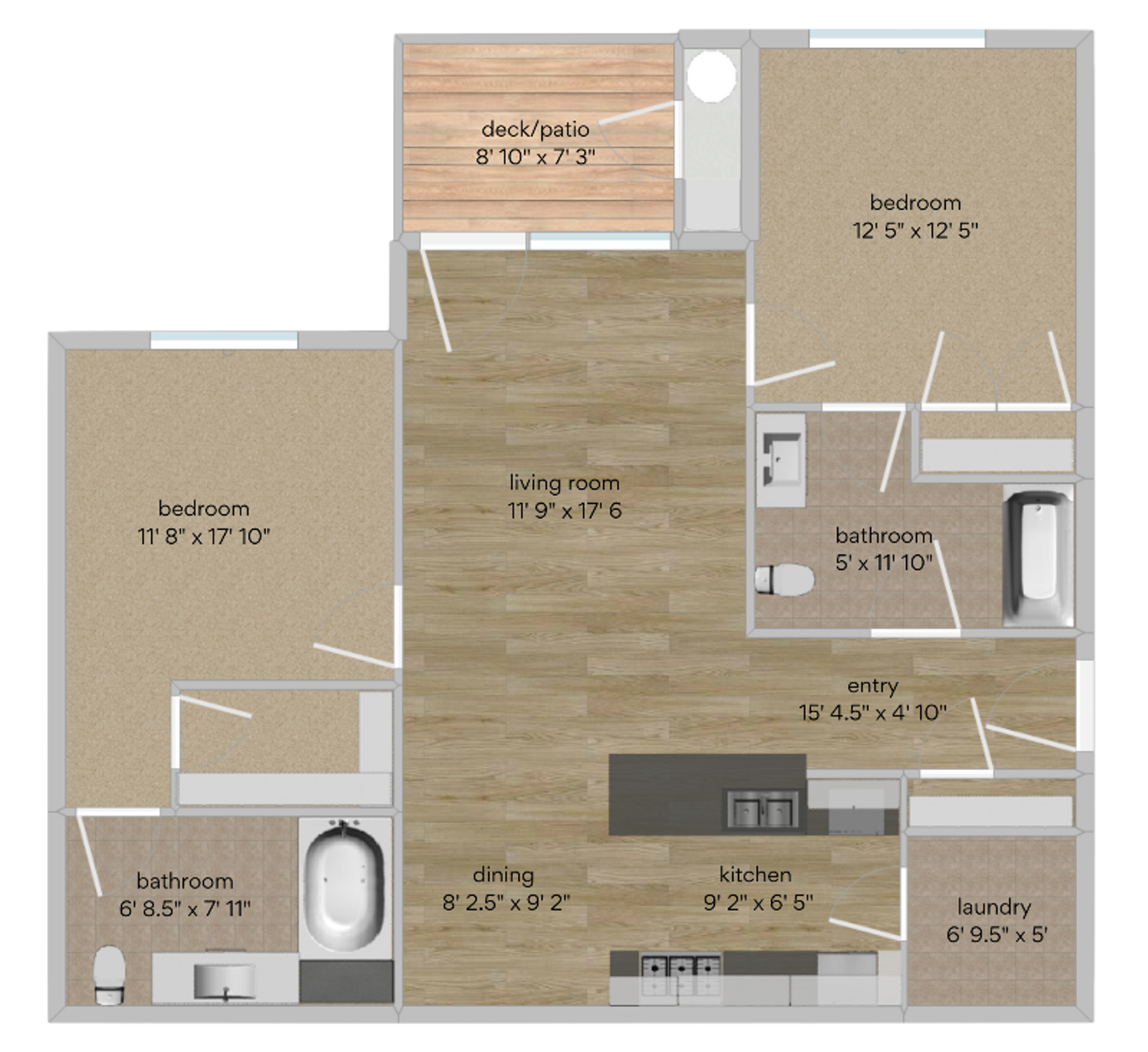 The Berkeley's 1,112 sqft. 2 bedroom and 2 bathroom apartment located on the 2nd floor features stainless steel appliances, granite countertops, an outdoor storage closet, spacious living space, walk-in master closet, and luxury finishes.